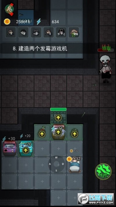 3. 進入房間後,你首先需要升級床以獲得更多金幣,然後升級大門和堡壘來攻擊凶猛的鬼。