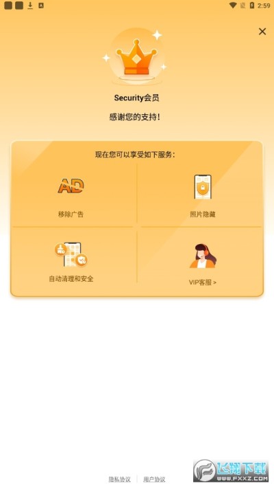 one security破解版會員解鎖版是一款非常受歡迎的手機安全防護軟件,這款軟件可以一鍵為您手機進行殺毒和垃圾清理等等操作,該版本已經進行破解,為您解鎖了永久VIP權限,有需要的朋友們快來飛翔資源網下載吧!