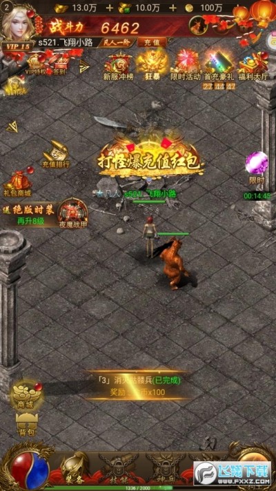 無邊的怪群兵臨城下,和兄弟一起誓死守護沙城,萬人一起合力擊退怪物攻城,贏取服務器獎勵!
