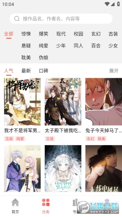 4、如果以上並沒有你感興趣的推薦,亦可在分類中根據個人愛好進行選擇,同理這裏會根據分類的詳細標簽按照人氣、最新和口碑進行排版分布。