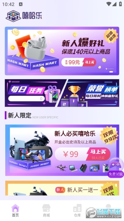 嘻哈樂app是一款手機盲盒購物軟件,軟件中有著海量的優質商品資源,用戶可以在線篩選自己感興趣的商品進行購物體驗,平台每天都會推出優惠活動等你參與,對軟件感興趣的話不妨點擊下載試試!