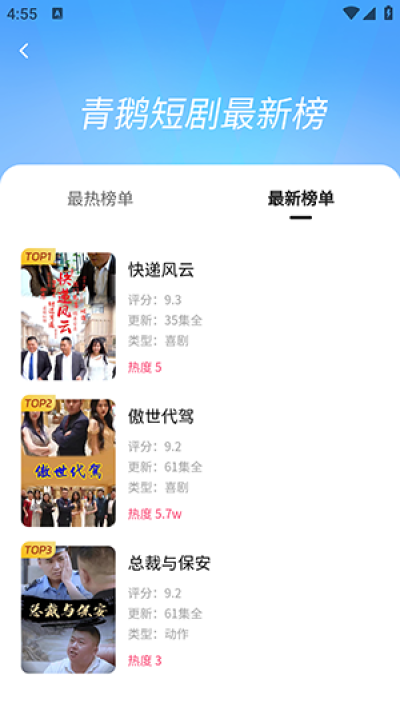青鵝視頻app是一款安卓手機免費看短劇的平台,軟件中內含海量的優質短劇內容,用戶還可以搜索關鍵詞進行快捷查詢體驗,還可以分享爆款短劇到朋友圈,與更多朋友一起看,對軟件感興趣的話不妨點擊下載試試!