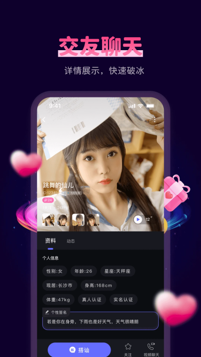 3.會根據個人資料來進行緣分的匹配,能得到默契值更高的用戶,也讓自己成功脫單。