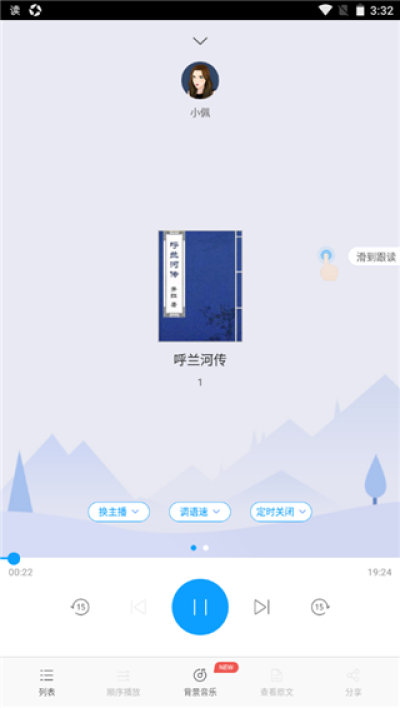 4、用戶隨時隨地都能在線聽書,還可以調整倍速,更換主播