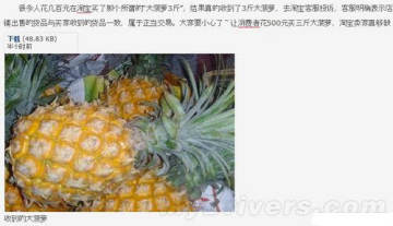 日前有用戶在微博以及論壇上爆料稱他們為了玩《暗黑破壞神3》,就在淘寶購買了所謂的“美國第三代大菠蘿”,但最後收到的不是《暗黑破壞神3》,而是真真正正的3個菠蘿,還是大個兒的。四百多塊錢買了三個菠蘿,虧大發了。