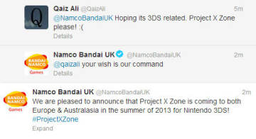 3DS《跨界計劃》美版發售日公布 2013年夏季上市 來源: 飛翔小編feichenpan 2013/1/22 10:13:20 瀏覽量:297 3DS掌機的遊戲《跨界計劃》已於2012年10月11日在日本地區發售,作為Capcom、NBGI和世嘉三家遊戲公司共同開發的原創遊戲,本作中玩家將操作來自三家遊戲公司旗下經典遊戲角色,共同對抗惡勢力來襲。現今有玩家在Capcom官方微博上詢問該作歐美版消息,而官方也在微博上回複了這位玩家的消息,該作將於2013年夏季登陸歐洲和澳大利亞地區,各位歐美版3DS玩家可以期待一下了。微博原文: