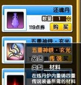 五重神鐵.玄光:在煉丹爐內重鑄四重傳說裝備所需的材料。