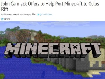 傳奇開發者以及虛擬現實設備Oculus首席技術官約翰·卡馬克今天表示,非常願意幫助《我的世界Minecraft》移植到Oculus。卡馬克在推特上與《我的世界》創作人Markus Persson聯係,了解到Persson現在已經不再為臉書收購Oculus感到惱怒。先前Persson曾因為臉書收購Oculus而取消了Oculus版的計劃,但看來現在已有了回旋的餘地。