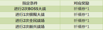 活動期間,達到指定條件,即可通過郵箱獲得祈福券獎勵,每項條件每日限領獎1次!