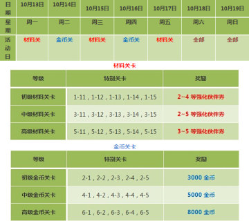 (2)特別關卡獎勵不影響關卡正常產出,金幣關卡獎勵不受雙倍金幣活動影響。