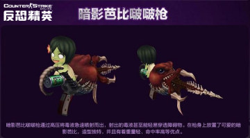 “暗影芭比啵啵槍(永久)”將是一款為今年雙十一推出的專屬神器。該神器造型獨特,其背部放置了可愛的暗影芭比,在霸氣之下又透露出一點的可愛,其通過高壓將毒液噴射而出,並且有著重量輕、命中率高等優點,可謂是集拉風、實用、獨家於一體的超級神器,喜愛的玩家一定不能錯過!