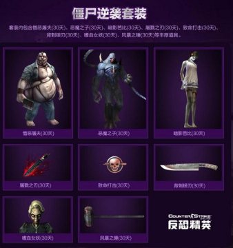 對半的折扣,難以想象的優惠,僵屍逆襲套裝雙十一給力登場。禮包內包含憎惡屠夫(30天)、風暴之錘(30天)、暗影芭比(30天)、背刺銀刃(30天)、惡魔之子(30天)、致命打擊(30天)、屠戮之刃(30天)、嗜血女妖(30天)等豐厚道具,可以助你在生化模式中披荊斬棘,享受變身為僵屍的酷炫體驗。