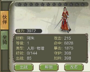 《天龍八部3D》橙色夥伴阿朱,雖然初始戰力高達3972,但是出戰等級卻是85級,因此玩家需要努力升級才能夠使用阿朱,下麵給大家帶來的是天龍八部3D橙色夥伴阿朱屬性。