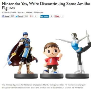 任天堂官方今天向Wired網站確認,一些受玩家廣泛喜愛的Amiibo手辦,例如馬裏奧和林克將會持續供貨,而一些表現低迷的角色,例如馬爾斯/村民/健身教練將會在首次出貨後中斷供應,消息放出後eBay上已經有賣家將對應的商品提價,看來任天堂肯定是故意的,低迷角色出貨量少的話,肯定有商家加價的,想收藏湊一套的玩家要趕緊買了。