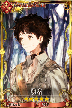 魔王勇者的勇者。能夠自由自在操作劍術與魔法,一人即能與一軍匹敵的力量,被稱作最強的人類同時也是魔族的宿敵。在隻身進入魔王城,討伐魔王的過程中,被魔王說服,一起協助能夠改變世界的計畫。是個心地善良,保護弱者具有強烈正義感的人。也是一個思維單純的人。外表看起來很不錯,雖然身邊有很多女性愛慕著,但因為自身不會看氣氛的性格讓本人對圍繞在身邊的女性毫無自覺。