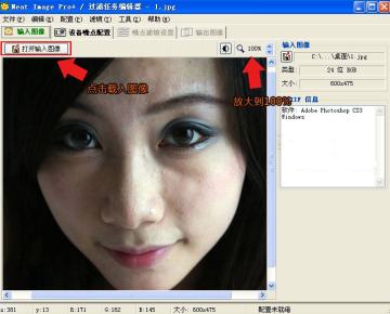 第二步,我們打開NEAT IMAGE濾鏡,載入PS裏處理好的圖片。並放大到100%,以便容易觀看效果!