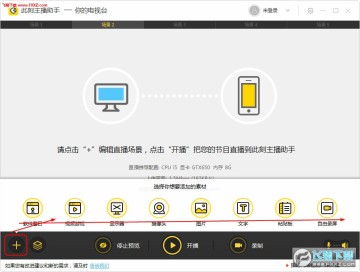 設置完成,點擊軟件左下角的加號按鈕,選擇和編輯直播場景,支持軟件窗口、視頻遊戲、顯示器、攝像頭、圖片、文字、粘貼板、自由錄屏等場景