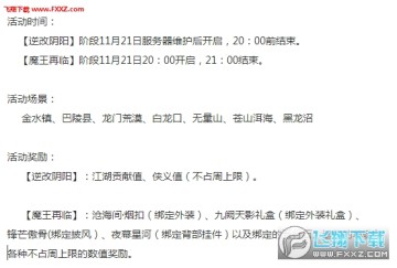【陰陽玄奇】分為【逆改陰陽】【魔王再臨】兩個階段。活動結束後會掉落【源明雅的謝禮】供服務器內所有20級以上俠士拾取。