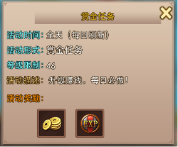達到46級就可以開啟“賞金任務”了,並且!十分的劃算!千萬不要錯過!