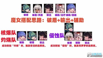 遊戲隻能上陣3名魔女,通常采用破盾+輸出+輔助的搭配模式。
