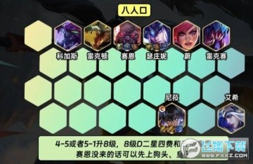 4-5/5-1升8級,8級D陣容二星四費和五費賽恩,賽恩沒來能夠先弄狗頭和皇子