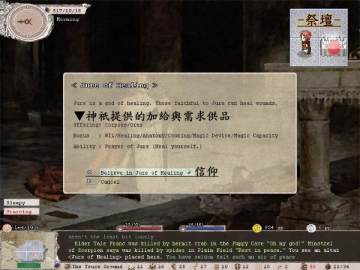 角色初始遊戲是無信仰的,在冒險的旅途上,玩家能發現眾神的祭壇。