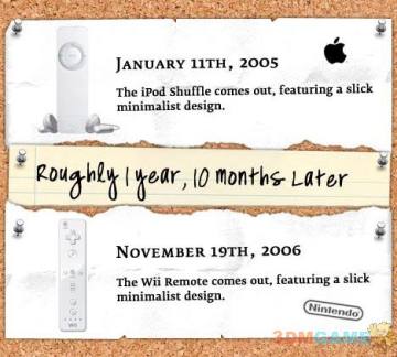 2005年1月11日,蘋果的MP3播放器iPodShuffle發布,簡潔修長的設計大受消費者好評。2006年11月19日,Wii的手柄被公布,兩個東西看起來就像親兄弟。