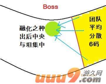 平時嚴格按照站位,不得越過紅線。每次融化之種出現後,迅速向綠圈位置與坦集合,治療抬滿團血,可使用減傷。清理掉add後再次分散。