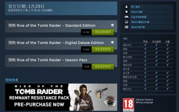 《古墓麗影:崛起》將於1月29日正式推出,目前PC版本已經通過Steam平台開啟預售。《古墓麗影:崛起》國區標準版售價160元,數字豪華版為248元,此外玩家還可以購買價值88元的季票。(預購地址)需要特別指出的是,《古墓麗影:崛起》首次請到國內配音演員楊夢露為勞拉進行全程普通話配音。