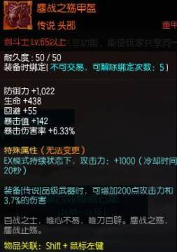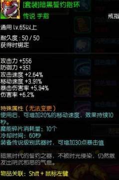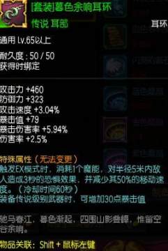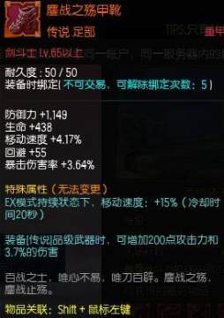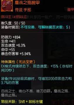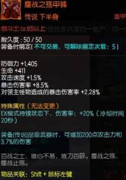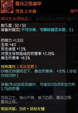 副本概率掉落65級傳說防具,具有在EX狀態下帶來超強BUFF的特殊屬性。