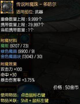 雲路副本會概率掉落傳說級屬性強化附魔珠。