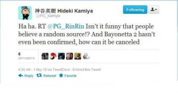 《獵天使魔女2》並未取消開發 因為它根本不存在 來源: 飛翔小編feichenpan 2012/5/3 11:31:53 瀏覽量:469 在PS3和XBOX360上有女版鬼泣之稱的動作遊戲《獵天使魔女》有傳聞其正在開發的續作被取消了。不過這一消息很快得到了製作方Platinum Games公司高層的辟謠。 Platinum Games製作人,同時也是《獵天使魔女》生父的神穀英樹在其微博twitter上表示,《獵天使魔女2》根本不可能被取消,因為你無法取消一個並不存在的遊戲,續作目前還隻存在於我的腦袋裏。 神穀英樹的微博twitter原圖:
