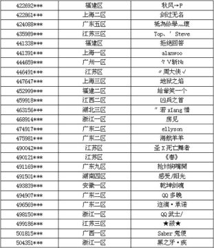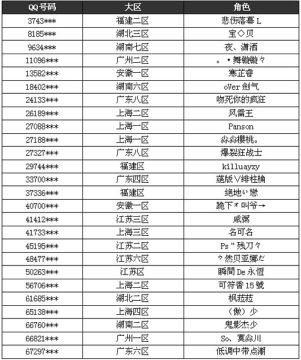 為保障各位玩家QQ帳號安全,因此會將每個QQ號碼其中三位用*號替代,同時會列舉該QQ帳號中相關大區的角色名,以便獲得體驗資格的玩家在隱掉三位數字的情況下仍能夠明確知道自己是否獲得體驗資格。