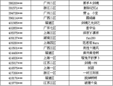 以下是在“DNF全新職業征名行動”中成功獲得體驗服暗夜使者體驗資格的300位玩家名單。