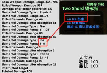 76+49*3=76+147=223;在元素electric傷害中也是如此,當魔法100時,+3 electric的傷害為3*(1+100(魔法)%+寶石特殊加成)=9,此時加成係數為1,但當魔法變成200後,如果還為1,則傷害為3*(1+200(魔法)%+寶石特殊加成)=12,數據為11,則加成係數不為1了。