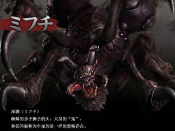 蜘蛛的身子獅子的頭,大型的鬼,和民間被稱為牛鬼的是一樣的恐怖存在。鐮刀狀的鋒利夠抓傷侵染了許多獵物的鮮血。