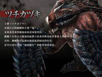 有著巨大的腕鰭的大型鬼。本來是用來挖掘地麵前進而使用的。其腕鰭十分發達力量強勁就算隻是來回揮動也有著驚人的破壞力。另外,腕鰭還可以刺向地麵起到製動的作用,還可以進行名為“地麵滑行”的特異突進攻擊。