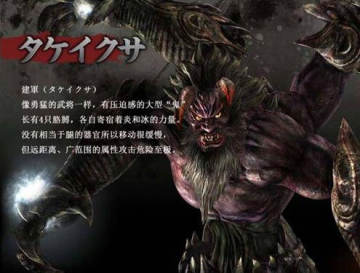 像勇猛的武將一樣,有壓迫感的大型鬼,長有四隻胳膊,各自寄宿著炎和冰的力量。沒有相當於腿的器官所以移動很緩慢,但遠距離,廣範圍的屬性攻擊危險至極。