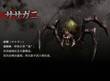 像蜘蛛一樣的小型鬼,在局部地區會大量棲息。因為會噴出猛毒,所以新手武士要注意。