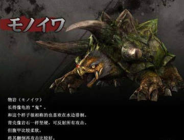 長得像龜的鬼。和這個樣子很像相稱也喜歡在水邊徘徊。背殼像岩石一樣堅硬,可反射所有攻擊。但腹甲比較柔軟,將其翻到再攻擊比較好。