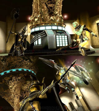 假麵騎士Wizard的究極形態與《假麵騎士Wizard The Movie 在魔法之國》中登場的新魔法師,有著金色魔法師的神秘稱號假麵騎士Sorcerer的對決場麵。