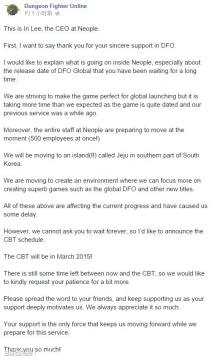 我想解釋一下Neople內部是怎麼個回事,尤其是關於DFO發布日期,DFO國際版大家已經等了好長一段時間。