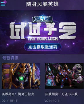 風暴英雄在10月17日正式開始內測,廣大玩家都非常渴望擁有風暴英雄激活碼,這裏為大家帶來一個好消息,隻要下載隨身風暴英雄APP,每天都能免費抽取風暴英雄激活碼哦。
