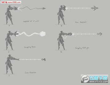 卡蜜爾的鉤索是最先確定的技能,雖然後來經曆了幾次詭異的迭代。比如其中一個版本,卡蜜爾就是一個英國版的女蜘蛛俠,她能一次性射出五枚鉤子,在牆壁之間來回跳躍。盡管這個機製很好玩,但是經過反複驗證,這一招在大多數戰鬥中沒有多大實用價值(而且使用的難度大得要死)。
