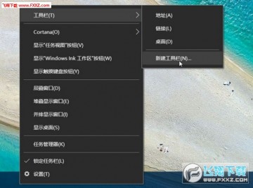 1、首先在任務欄的空白處單擊鼠標右鍵,跳出選單以後選擇【工具欄】→【新建工具欄】。