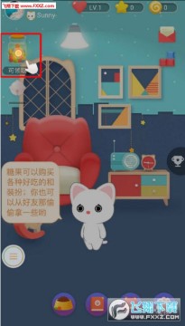 寵物家裏左上角顯示主人的昵稱、頭像和它的昵稱,下麵會有個裝糖果的玻璃瓶,每三個小時免費領取一次有“可領取”的標識,也可以進入好友寵物家偷點回來,偷完記得補償它們喂點東西。糖果用於購買食物、裝扮、學習和設計動作。