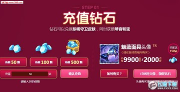 1.在活動頁麵上使用Q幣充值鑽石,5Q幣充值 50 鑽石。在遊戲客戶端購買並使用魅藍麵具頭像,贈送 150 鑽石,單個大區頭像隻限購買一次。充值的鑽石會在頁麵上顯示。
