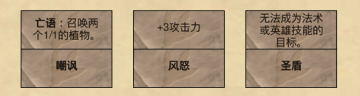 1費法術,任務:召喚7個具有亡語的隨從。獎勵:希望守護者阿瑪拉。