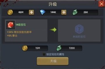 寶石升級:消耗金幣跟寶石碎片給寶石升級,升級會隨機改變並提升寶石屬性