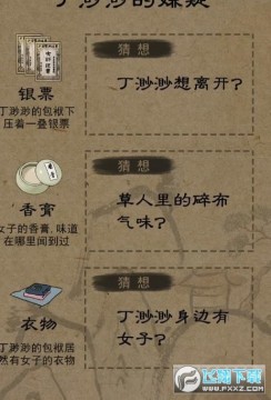 20. 之後在房間當中還可以得到丁渺渺房間香膏的氣息這個線索,之後開始進行推理丁渺渺的嫌疑,如圖進行放置。